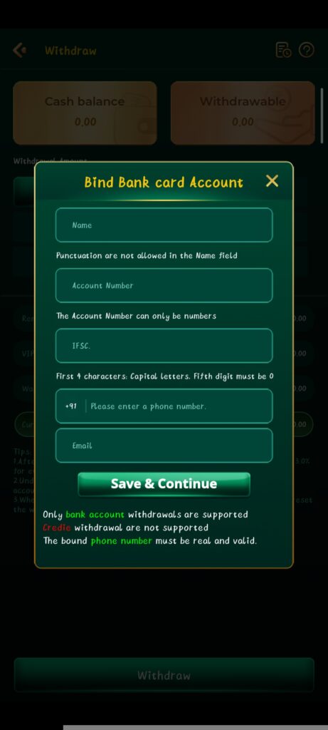 Once your bank account is saved in this game, you can withdraw it very easily.Withdrawal of this game is very fast, it will come to your account in about 30 minutes. 💸🤗