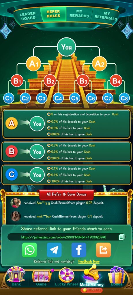 - To refer Jaiho Spin app, first of all you have to copy your referral link from the game, after that you can earn money by sharing your referral link with any of your friends.