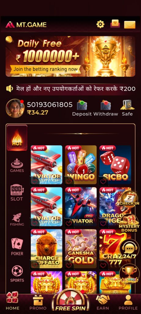 MT GAME This application has been launched today. This application is the best application of yono till date. In Matka, you get San Bonus for free. In this application, you can make a minimum withdrawal of ₹ 100.