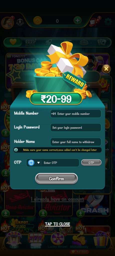 - Then after that register by entering your bank account holder name. Then you will get bonus ๐ 79 from Yono 777.